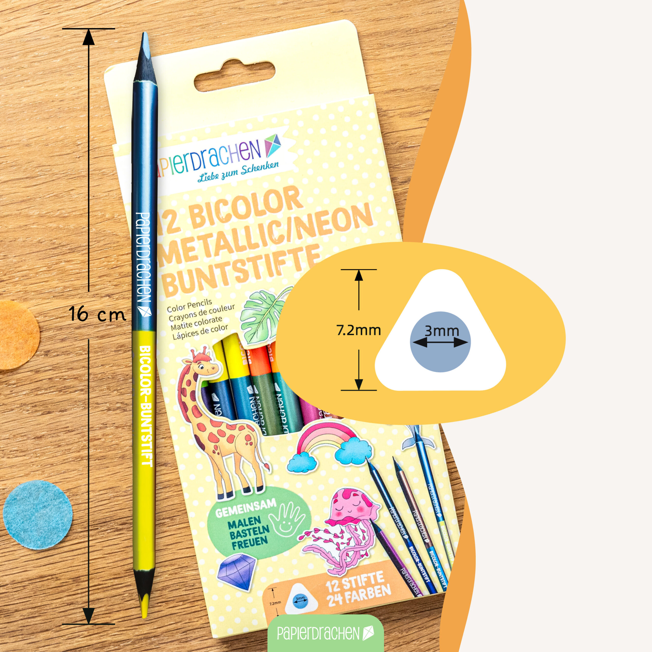 Dieses besondere Buntstifte-Set von Papierdrachen vereint 12 leuchtend intensive Neon- und schimmernde Metallicfarben – für strahlende Effekte und kreative Highlights auf jedem Kunstwerk.