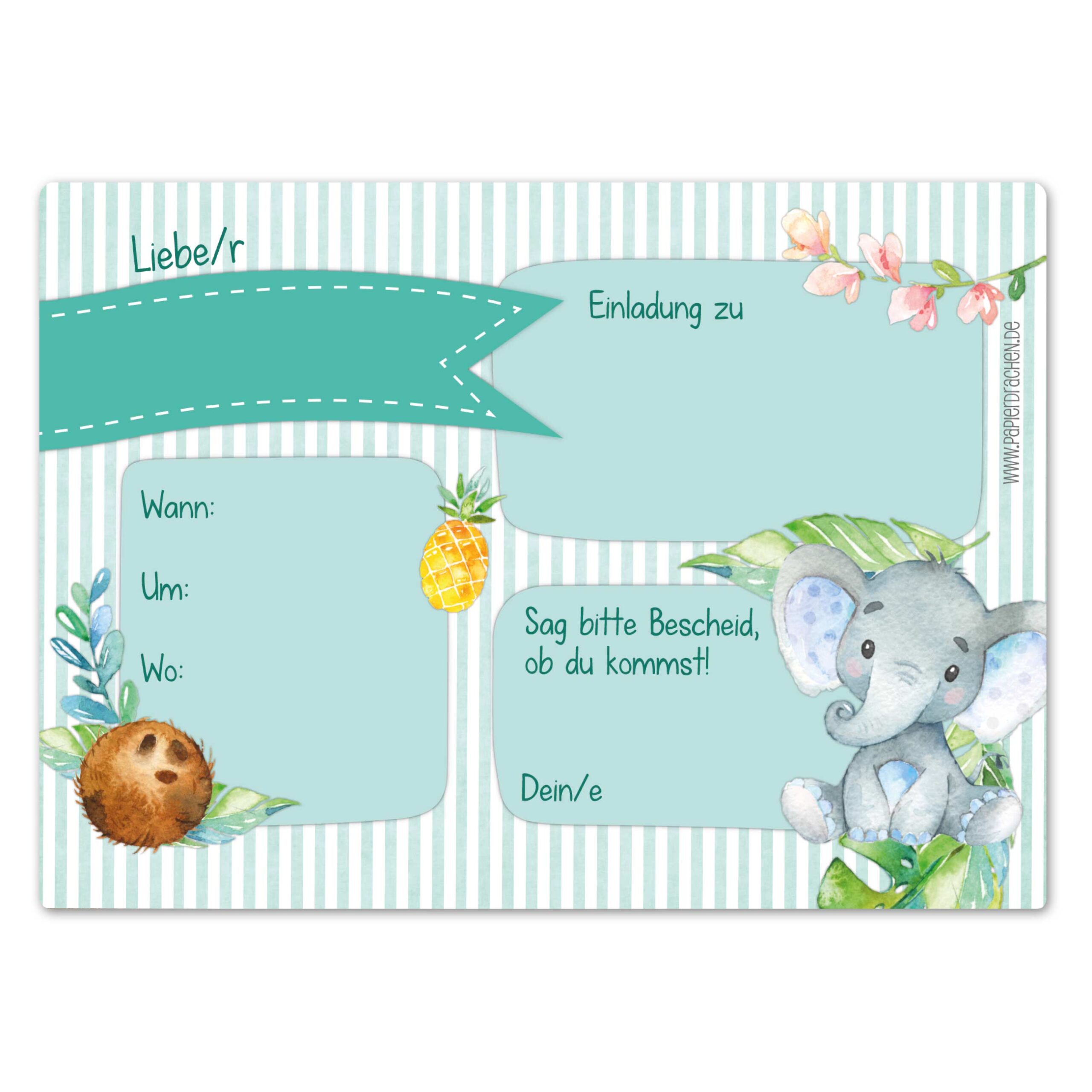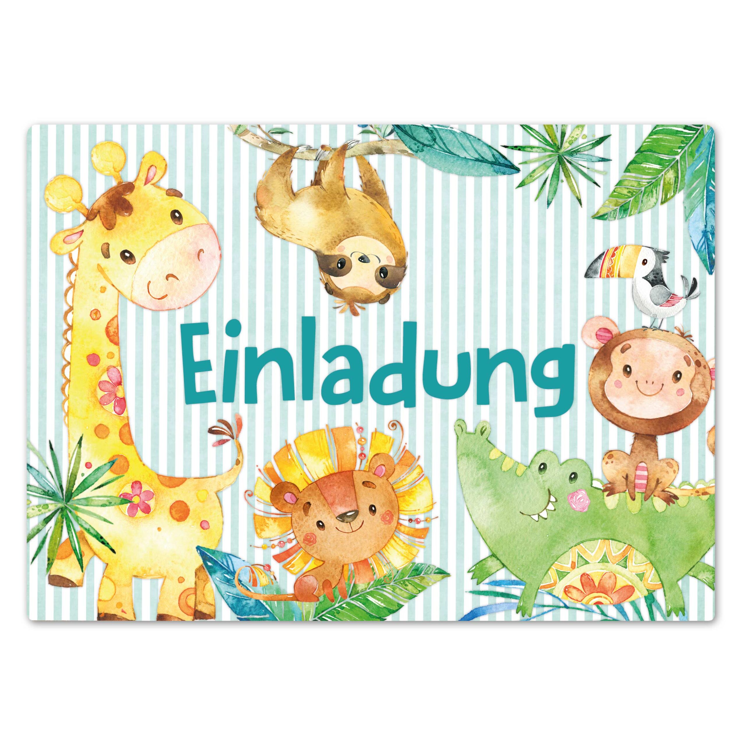 12 süsse Einladungskarten – Motiv Afrika Tiere– DIN A6 (300g/m² Kartonpapier – in Deutschland hergestellt)