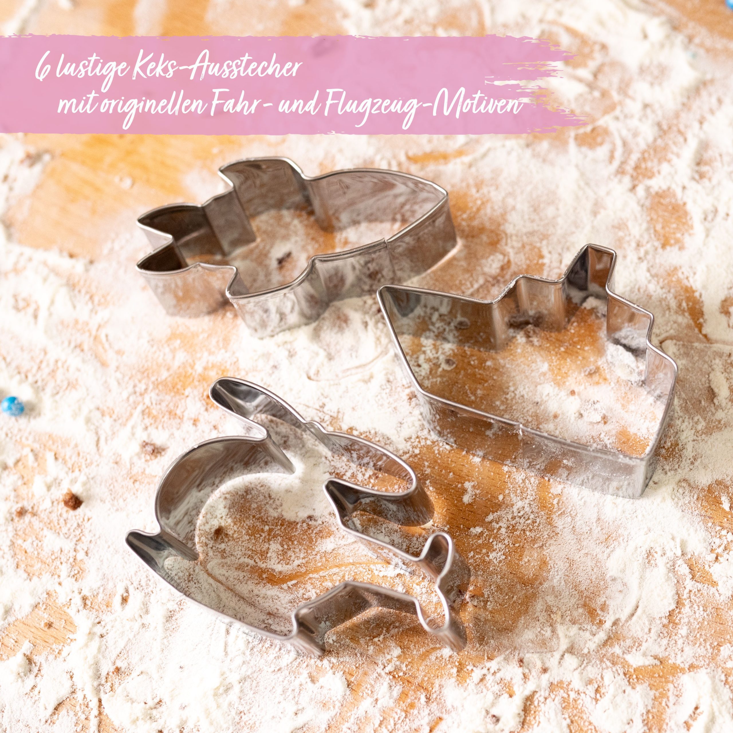 Lieferumfang: 6 Keksaustechformen mit dem Thema „Fahrzeuge“