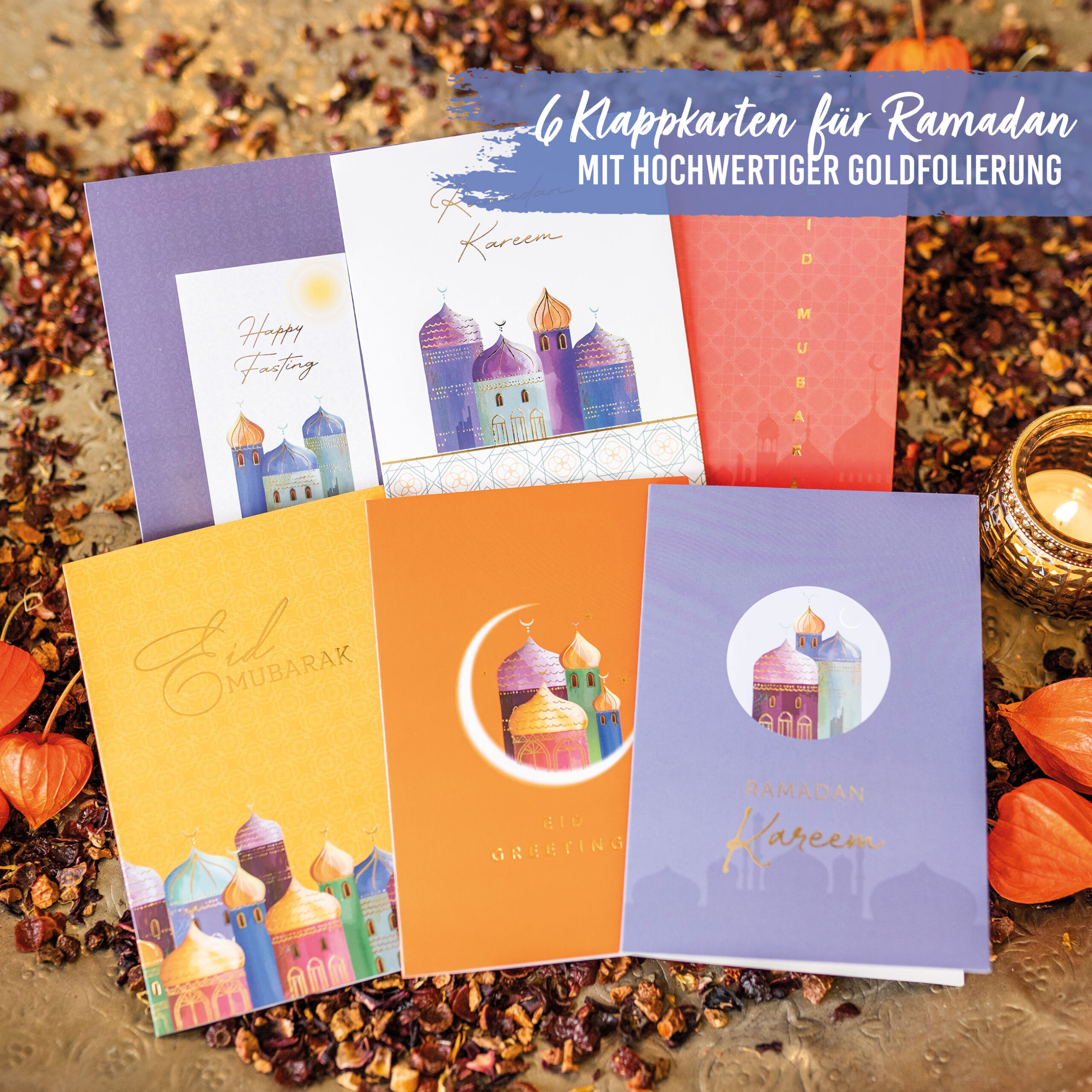 Schreibe die erste Rezension für „6 Ramadan Klappkarten Colourful goldfoliert“