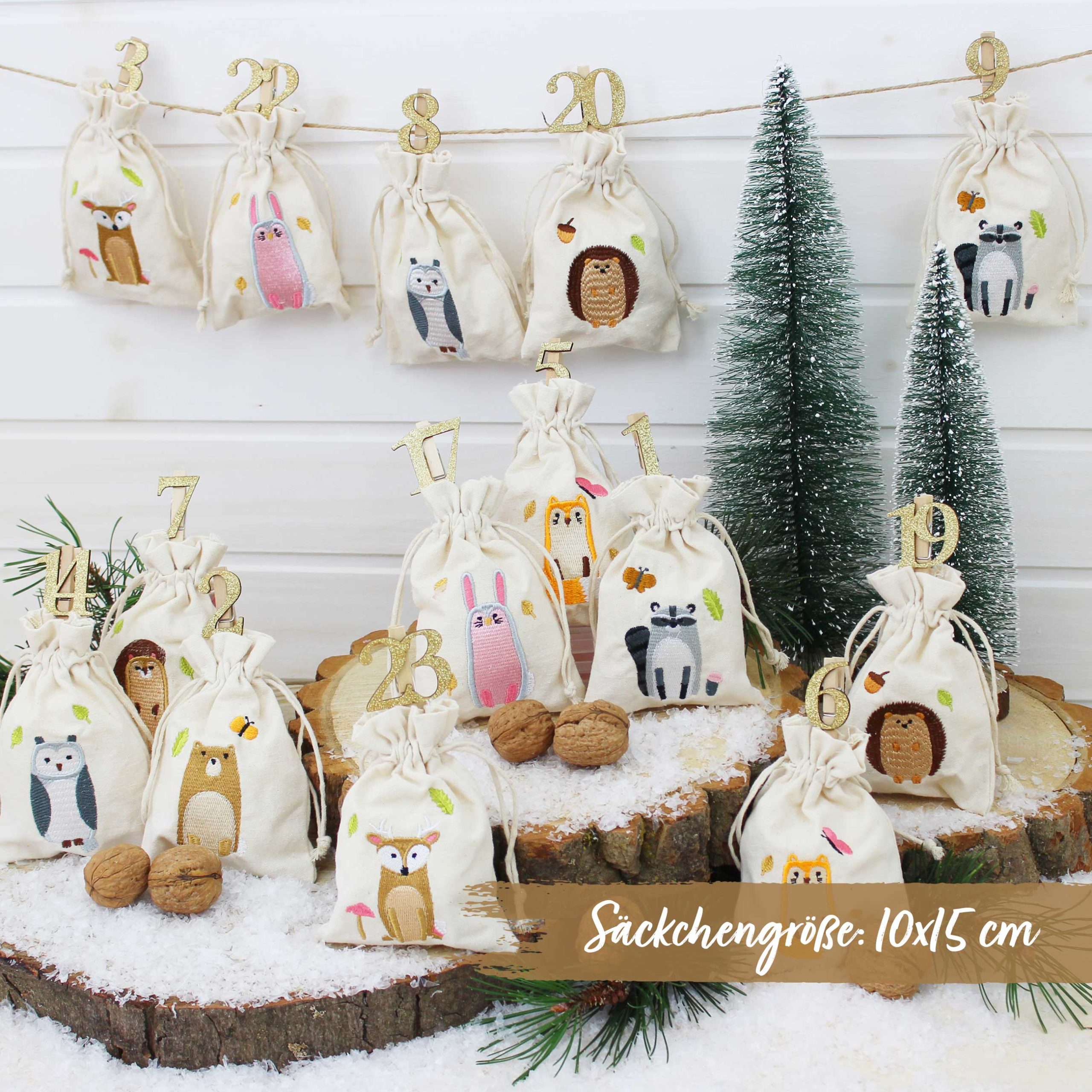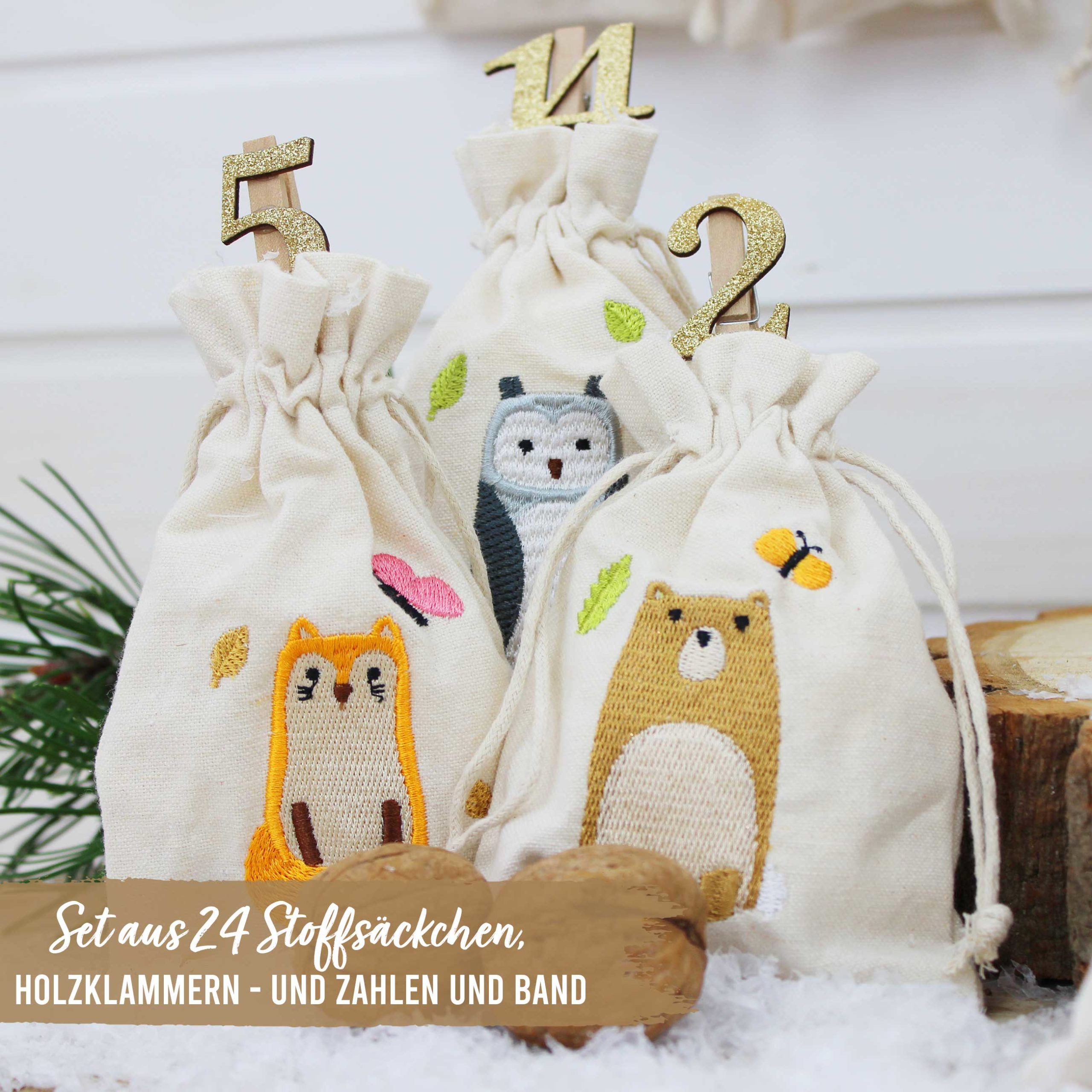 Adventskalender Stoffsäckchen – Waldtiere hochwertig bestickt