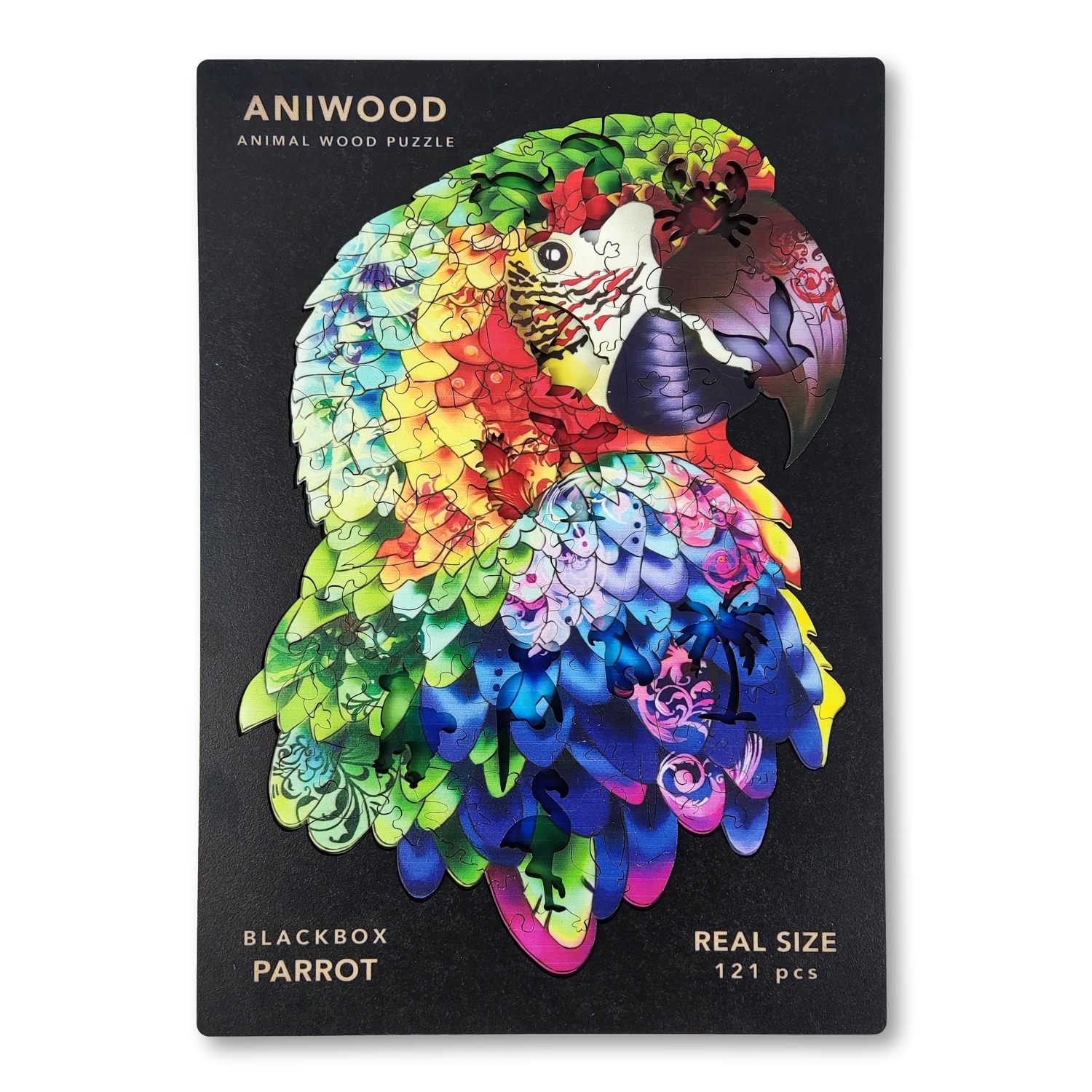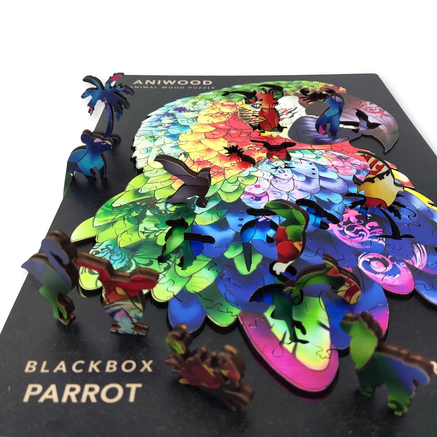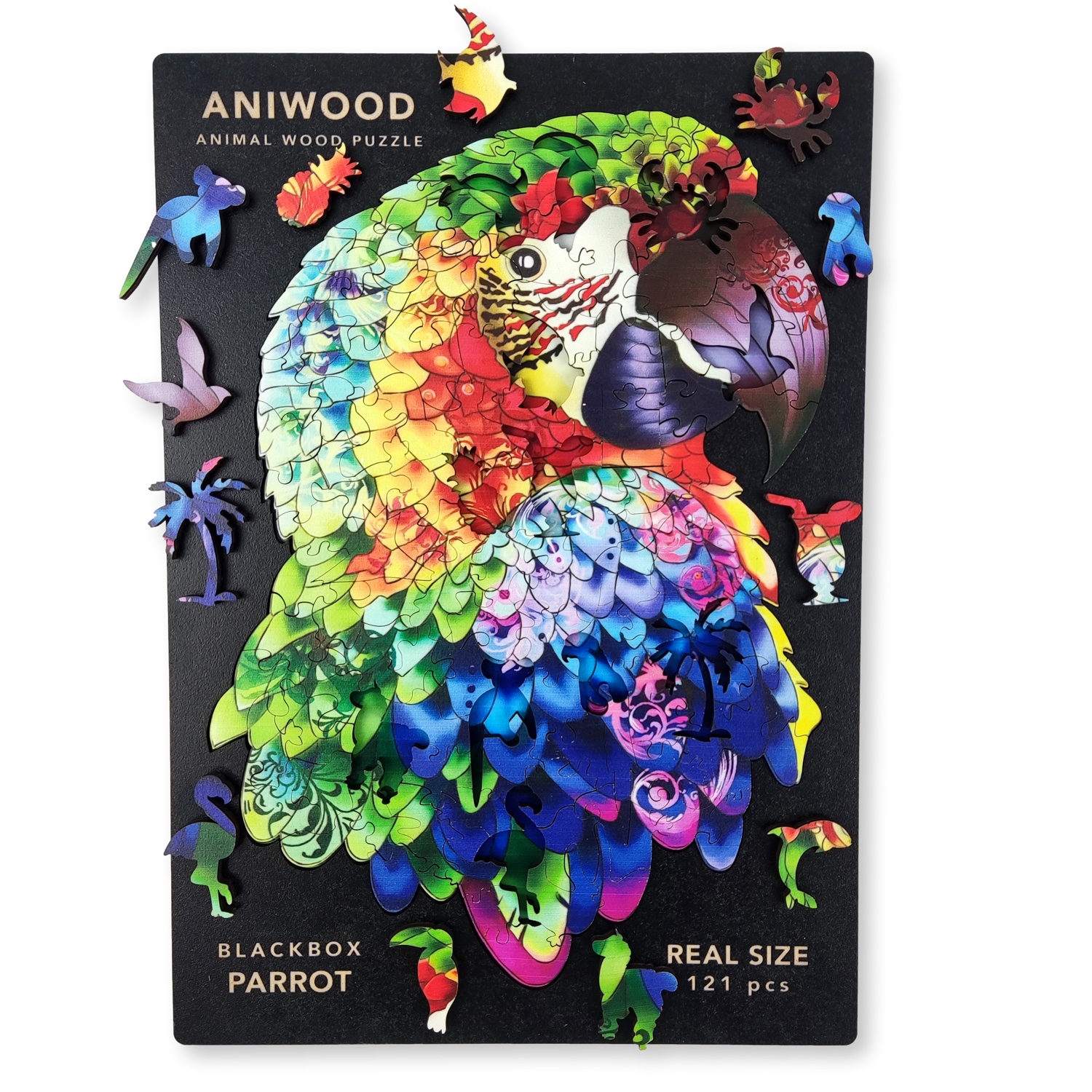 Jedes Teil ist einzigartig und einige von ihnen sind spezielle Teile mit Formen von Objekten und Tieren, die mit dem Design verbunden sind. Entdecken Sie sie die neuen Holz-Puzzles von Aniwood.