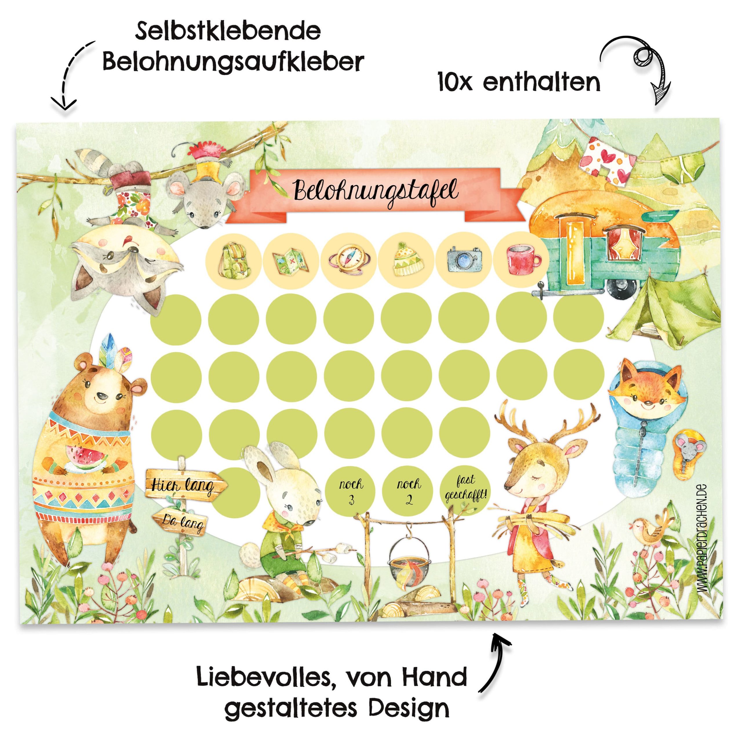 Belohnungstafel für Kinder 10 Blatt – mit tollen Stickern für Jungs und Mädchen – Motiv Camping