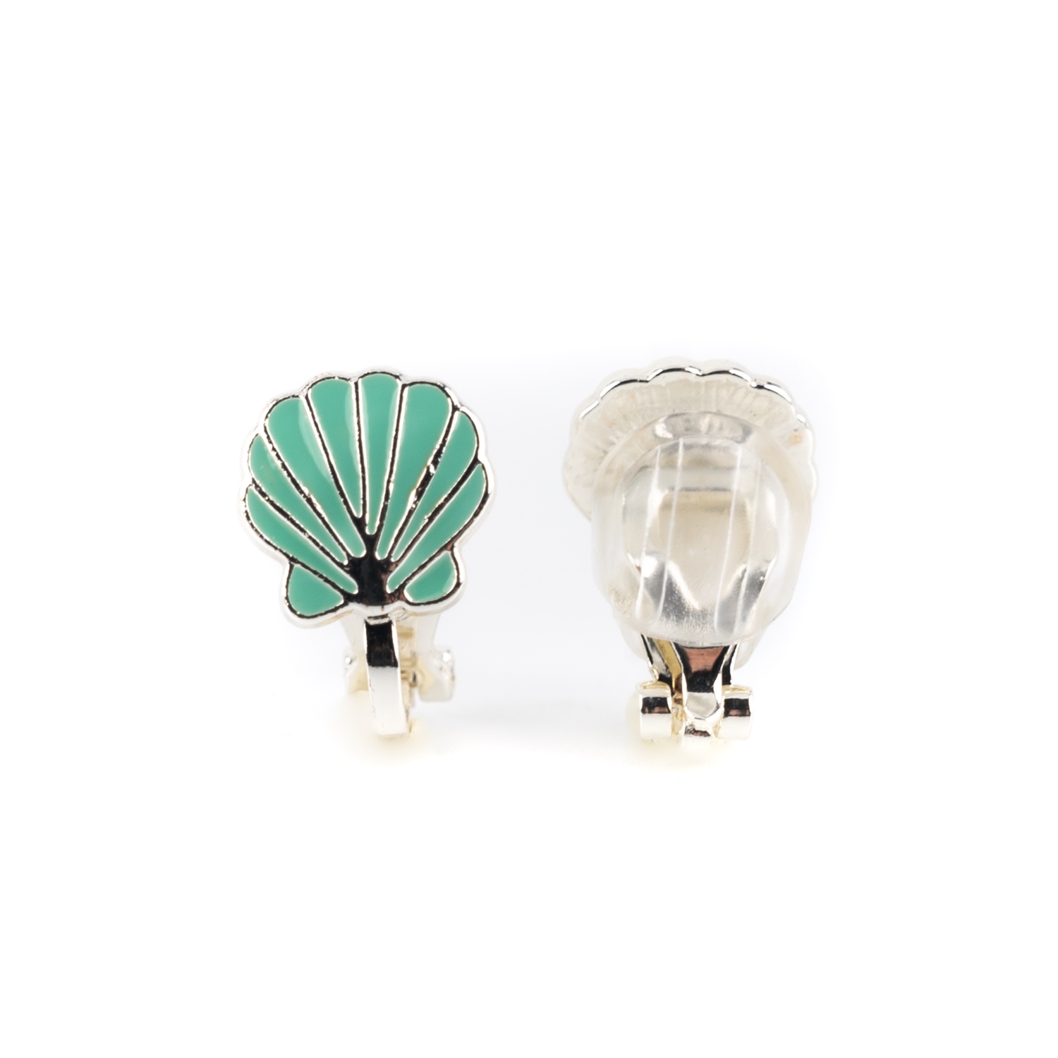 Busy Lizzie – Clip-Ohrringe – Muschel – Hellblau