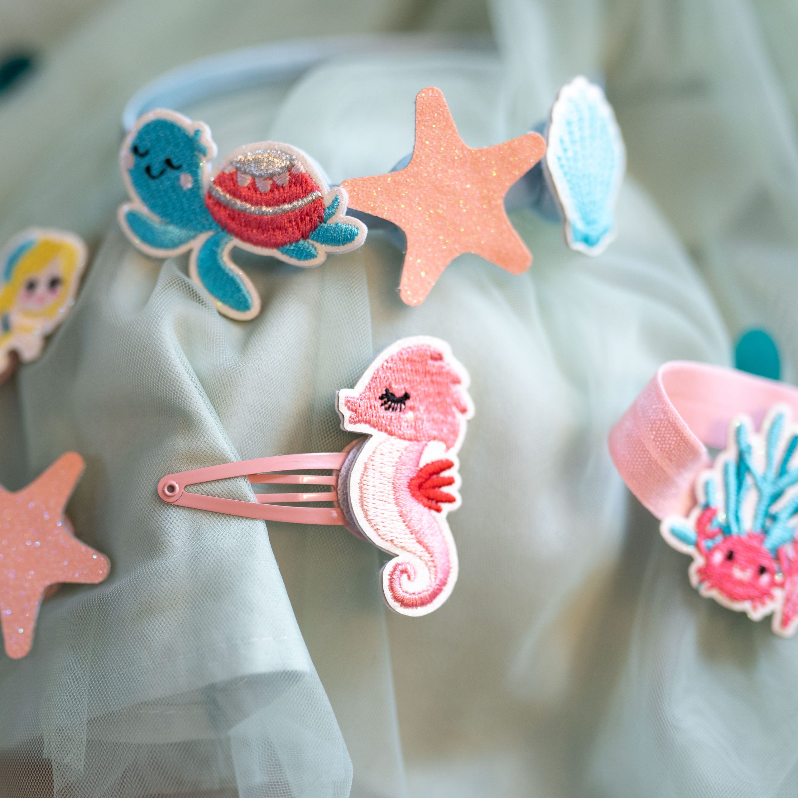 Haarschmuck Set – Haarreif mit Patches – Meerjungfrau