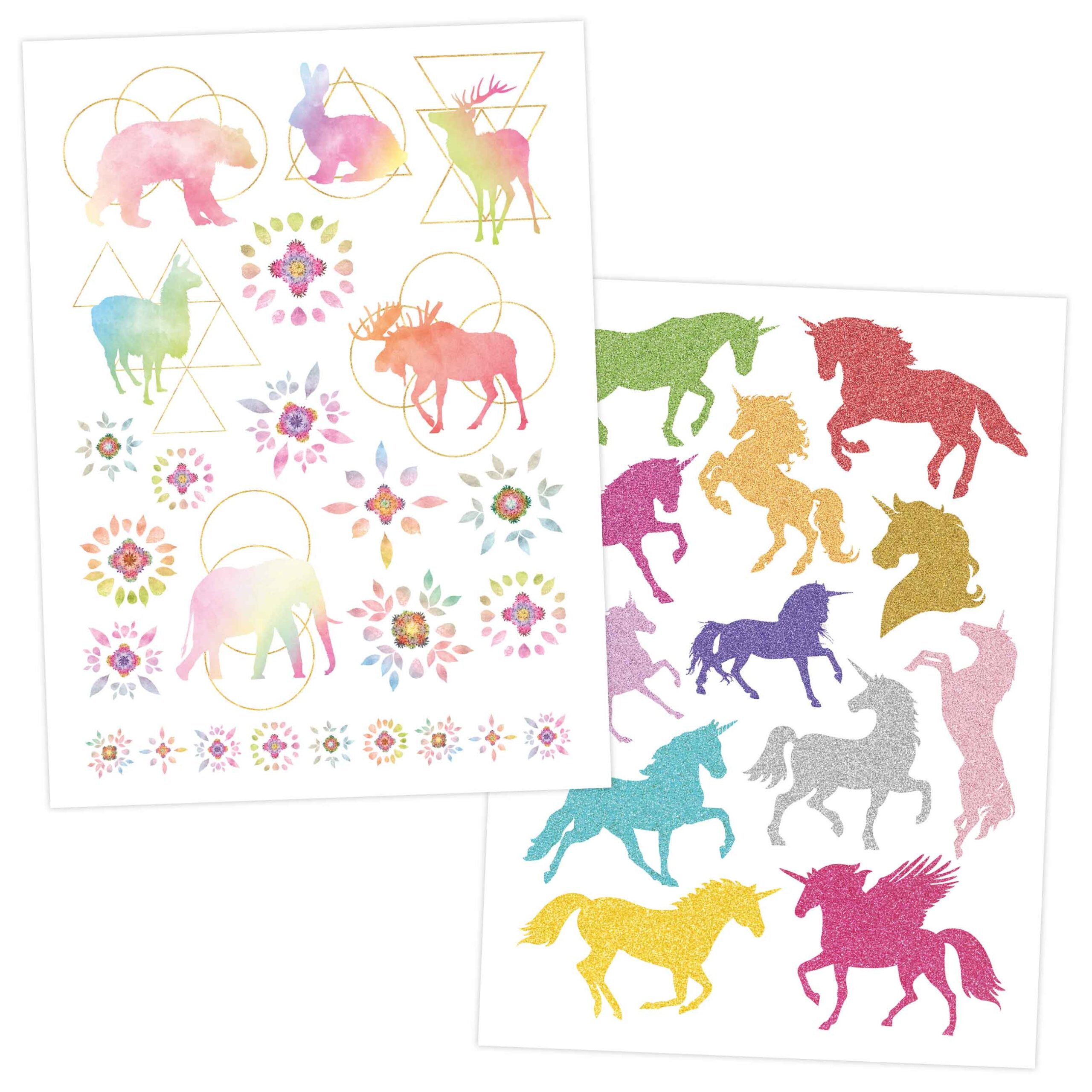 100 Metallic-Tattoos zum Aufkleben – Hautfreundliche Kindertattoos Pferde & Mandalas – coole Designs – als Geburtstagsmitgebsel oder Geschenkidee – Vegan – TÜV-geprüft SICHER UND ZUVERLÄSSIG: Das Herstellungsverfahren der glitzernden Tattoos wurde vom TÜV...