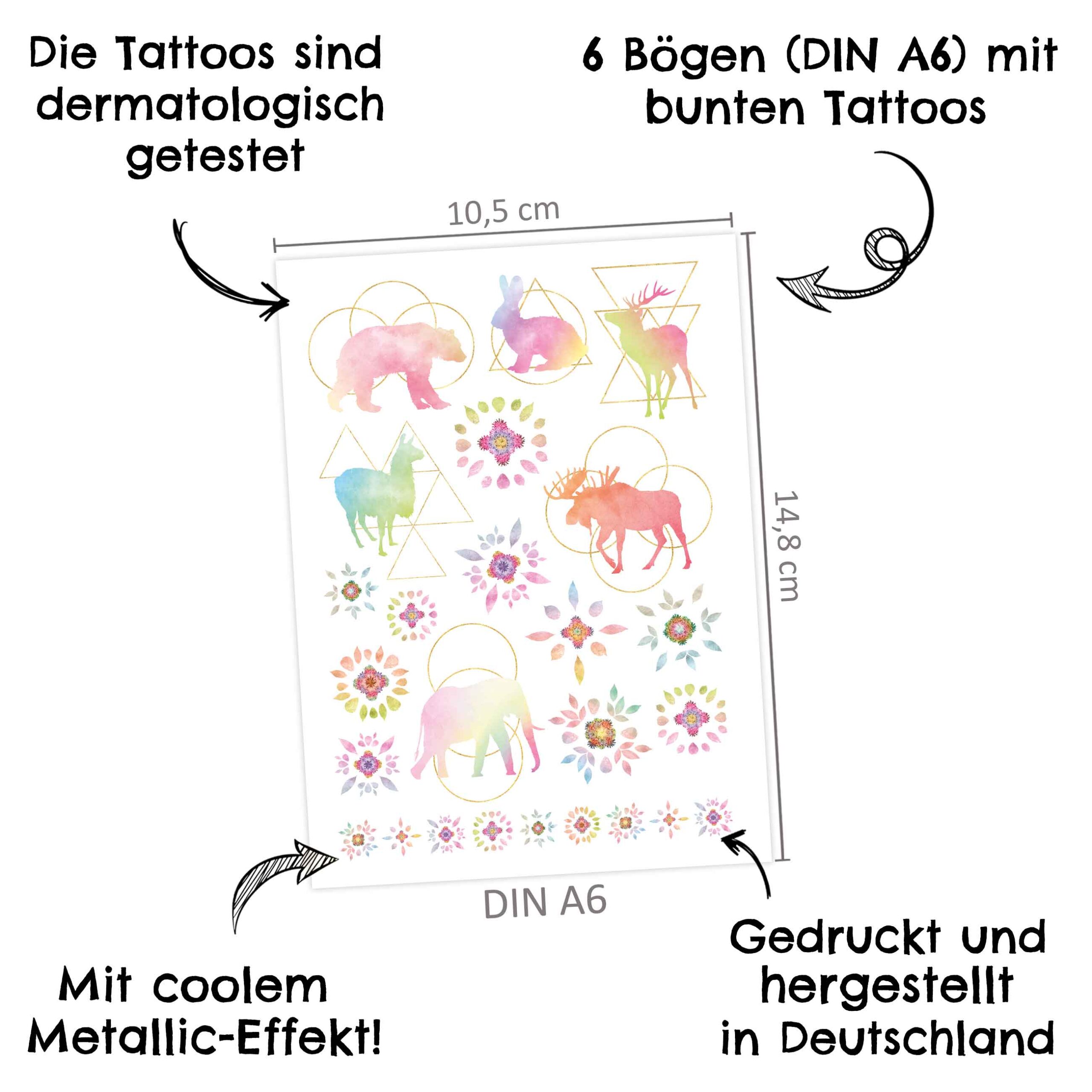 6 Bögen (Grösse DIN A6) mit temporären Tattoos für Kinder – kindgerechte Designs für Jungen und Mädchen