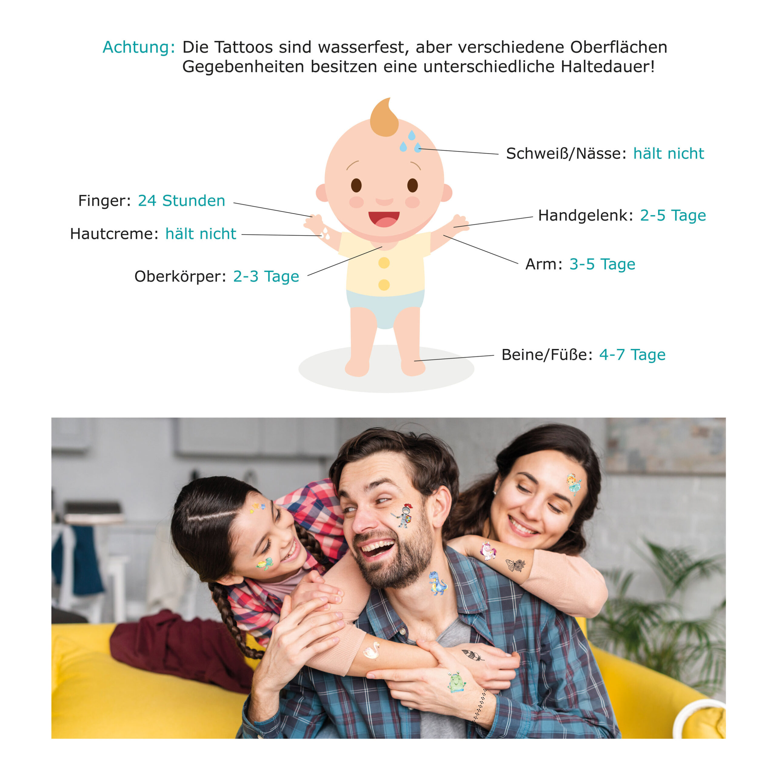MITGEBSEL ZUM KINDERGEBURTSTAG – Ideal als Geschenk für Kinder und garantiert ein Partyhighlight auf jeder Feier. Sehr beliebt sind die Kindertattoos auch als Mitgebsel für die kleinen und großen Geburtstagsgäste – es sind 6 Bögen enthalten, diese können Sie auch aufteilen und jedem Kind einen Bogen schenken.