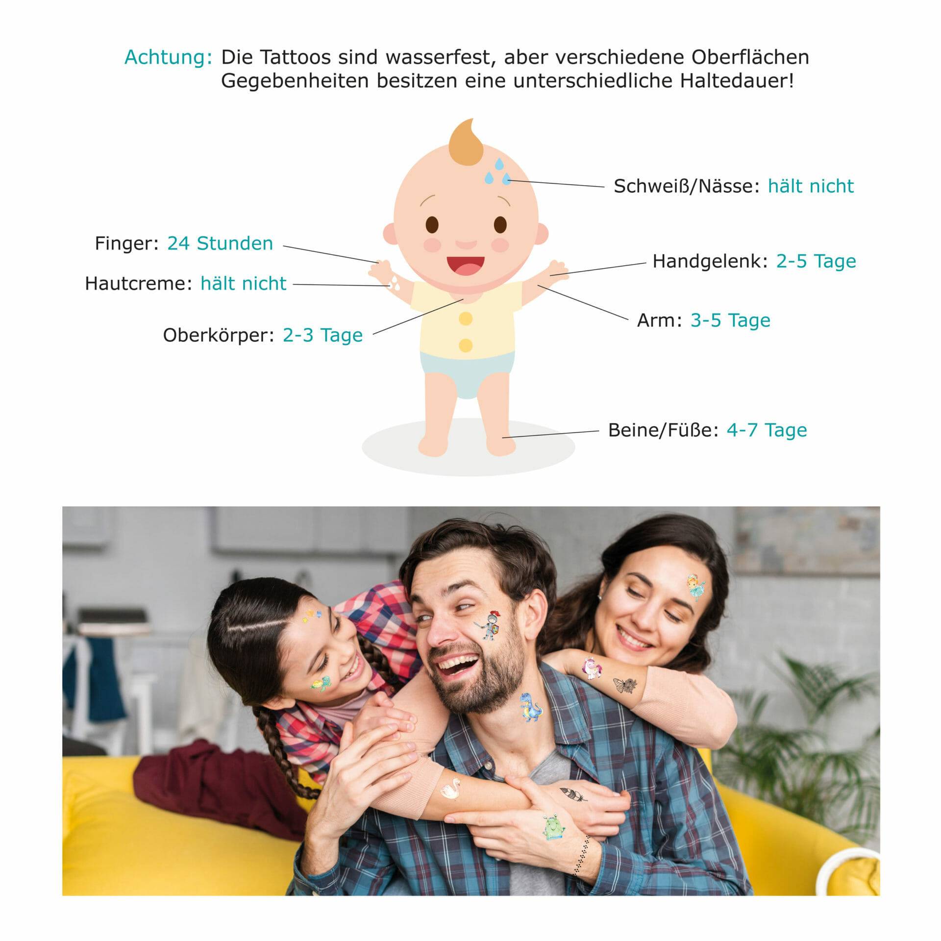 MITGEBSEL ZUM KINDERGEBURTSTAG – Ideal als Geschenk für Kinder und garantiert ein Partyhighlight auf jeder Feier. Sehr beliebt sind die Kindertattoos auch als Mitgebsel für die kleinen Geburtstagsgäste – es sind 6 Bögen enthalten, diese können Sie auch aufteilen und jedem Kind einen Bogen schenken
