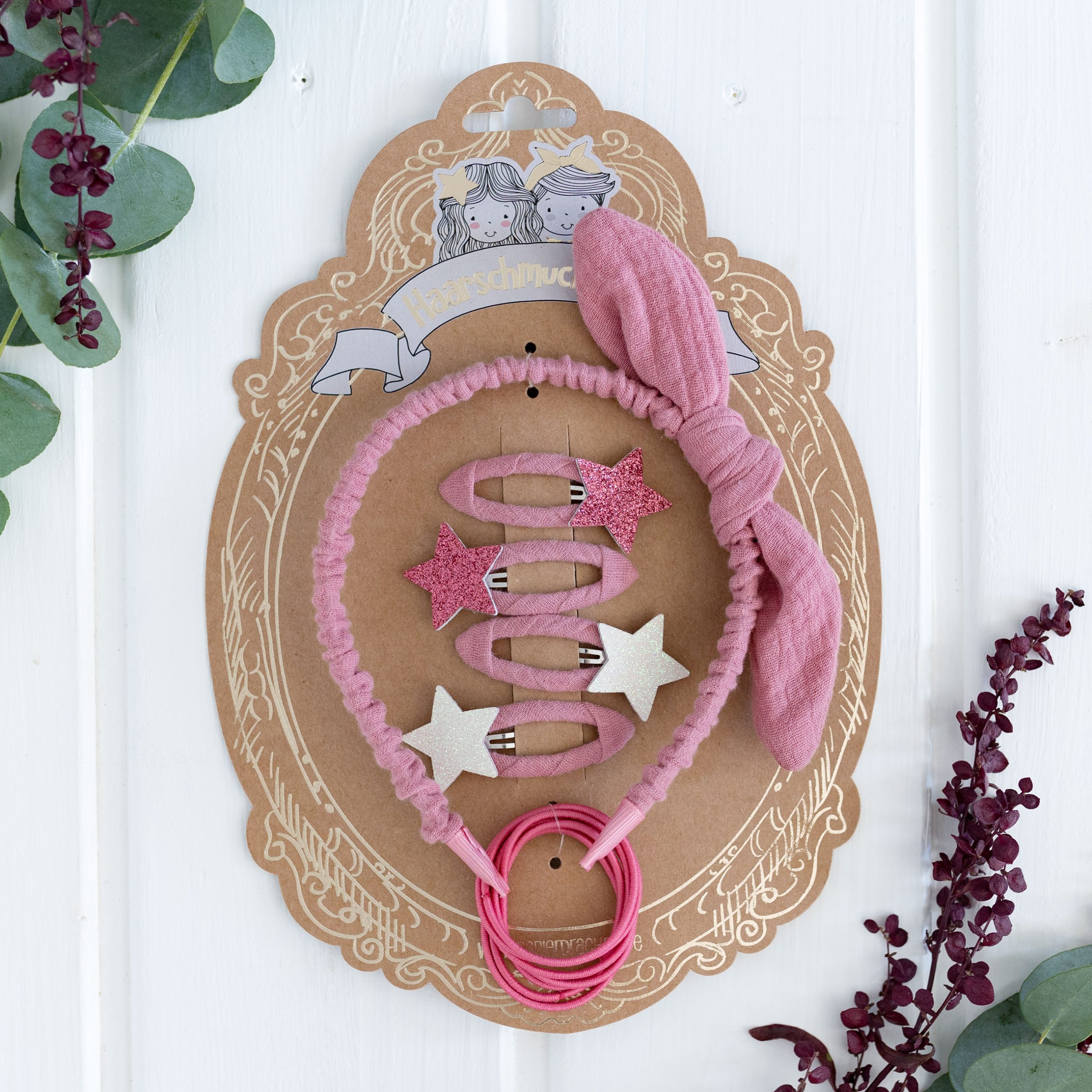 Musselin Haar-Accessoires Set – Altrosa