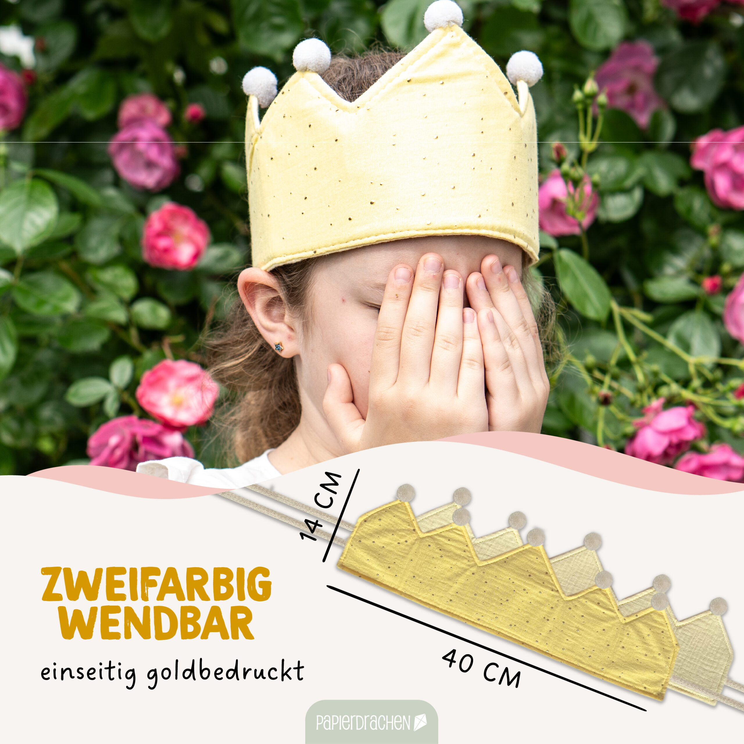 Ausserdem kannst du die Krone mit dem Band individuell binden. Hochwertiger Musselin, bekannt für seine Weichheit und Atmungsaktivität, ideal für die empfindliche Haut von Kindern.